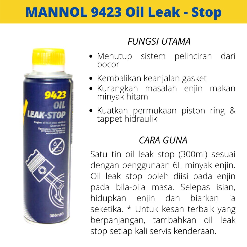 Mannol Oil Leak Stop 300ml Untuk Kebocoran Kecil Minyak Hitam Leaking Shopee Malaysia